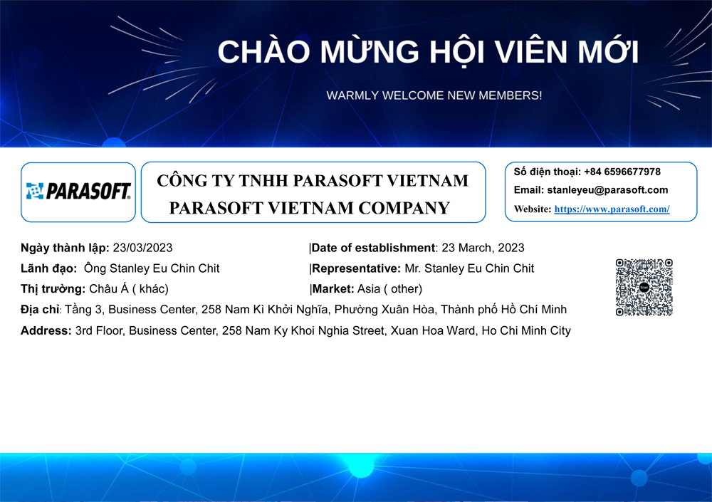 Chúc mừng Công ty TNHH Parasoft Vietnam trở thành Hội viên của VINASA