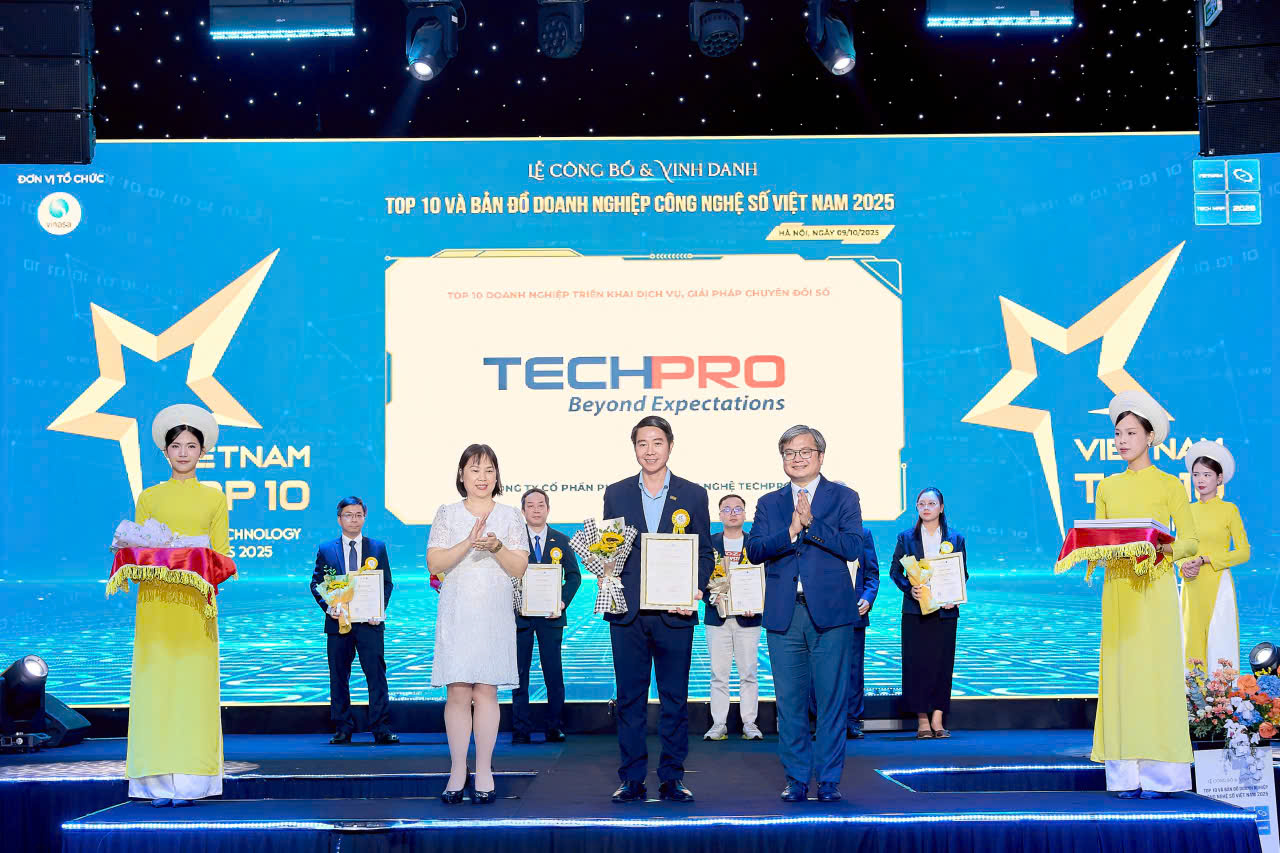 Công ty Cổ phần Phát triển Công nghệ TECHPRO vừa ghi dấu ấn đậm nét tại giải thưởng danh giá Top 10 Doanh nghiệp CNTT Việt Nam do Hiệp hội Phần mềm và Dịch vụ Công nghệ thông tin Việt Nam (VINASA) tổ chức.