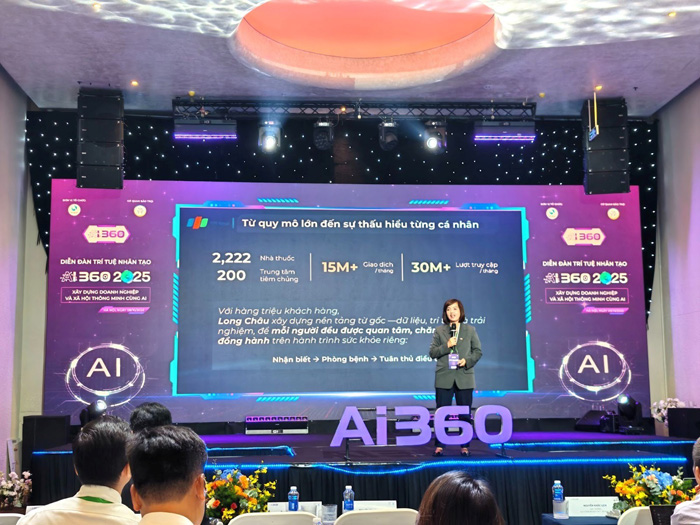 Từ góc nhìn ứng dụng công nghệ trong y tế, bà Nguyễn Đỗ Quyên – Phó Tổng Giám đốc FPT Retail, Giám đốc Điều hành hệ thống Long Châu, Tập đoàn FPT – chia sẻ chiến lược cá nhân hóa hành trình chăm sóc sức khỏe người Việt bằng AI, đặt con người làm trung tâm. Với mạng lưới hơn 2.400 nhà thuốc và 200 trung tâm tiêm chủng, Long Châu ứng dụng AI để giúp dược sĩ tư vấn chính xác hơn, người dân nhận diện nguy cơ bệnh sớm hơn và tuân thủ điều trị tốt hơn – hướng tới mục tiêu “Chăm sóc sức khỏe người Việt thông minh hơn, nhân văn hơn.”