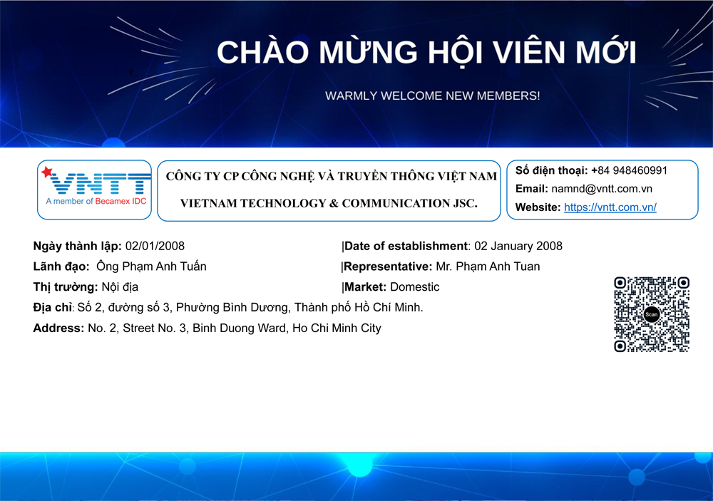 Chúc mừng Công ty CP Công nghệ và Truyền thông Việt Nam trở thành Hội viên của VINASA