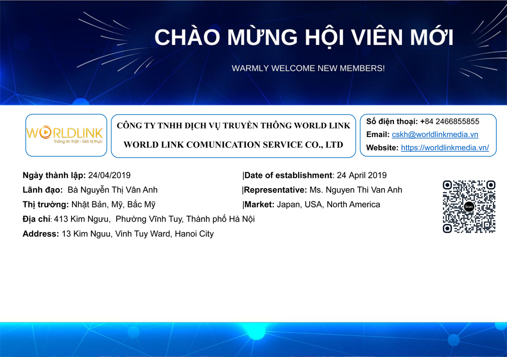 Chúc mừng Công ty TNHH Dịch vụ Truyền thông World Link trở thành Hội viên của VINASA