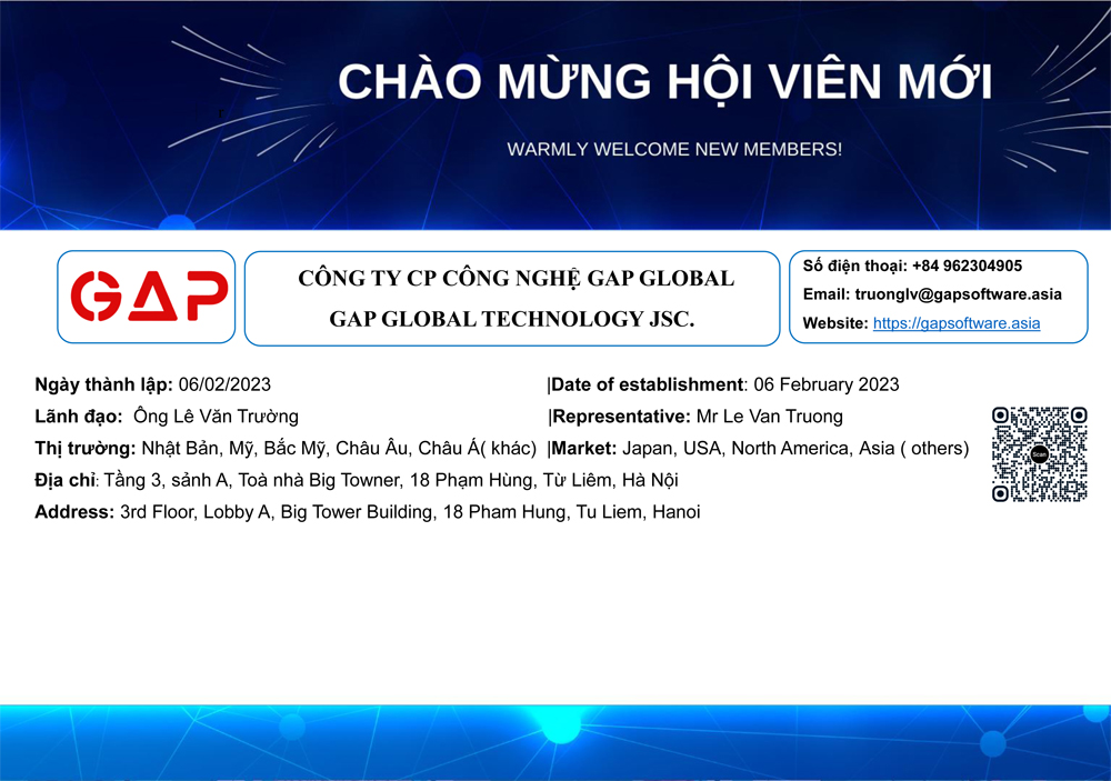 Chúc mừng Công ty CP Công nghệ GAP Global trở thành Hội viên của VINASA