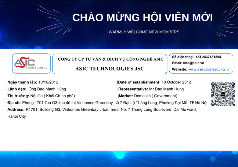 Chúc mừng Công ty CP Tư vấn & Dịch vụ Công nghệ ASIC trở thành Hội viên của VINASA