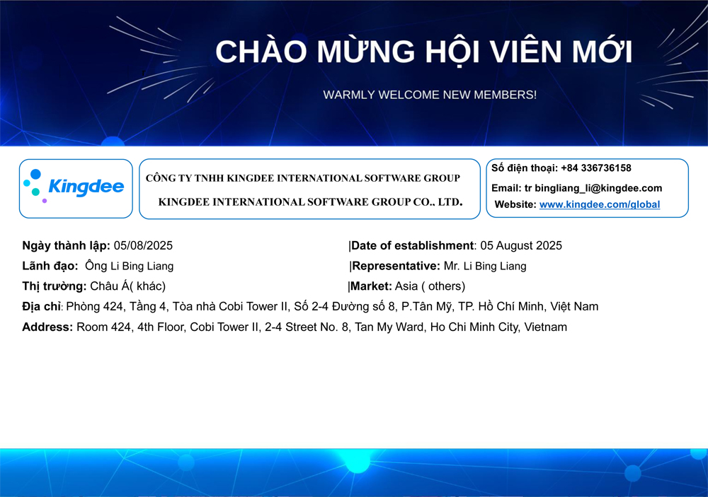Chúc mừng Công ty TNHH Kingdee International Software Group trở thành Hội viên của VINASA