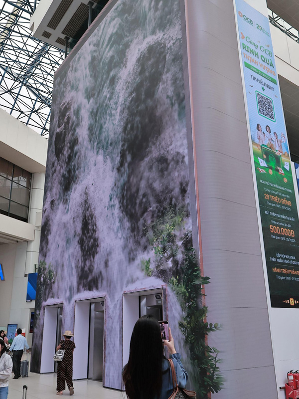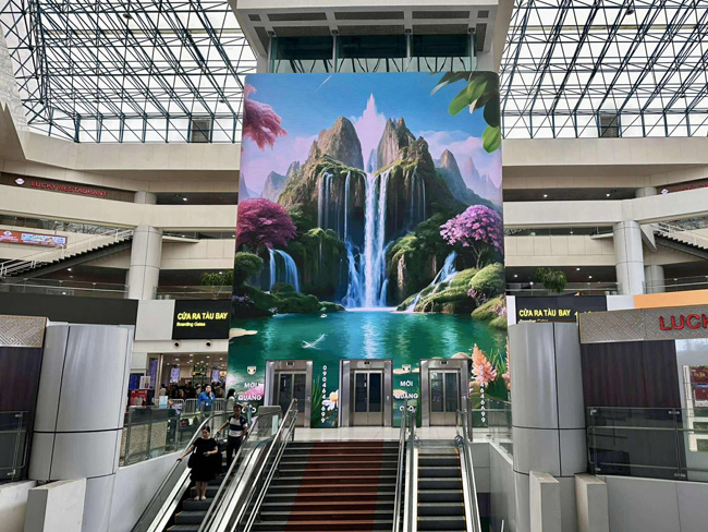 Trong một không gian vốn được xem là kín đáo và có giới hạn tầm nhìn như sân bay, việc xuất hiện một màn hình LED khổng lồ với diện tích lên đến 207m² tạo ra một trải nghiệm thị giác đầy bất ngờ. Chính sự “lệch chuẩn” đó kích thích tò mò, phấn khích và nhu cầu check-in tức thì của hành khách.